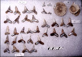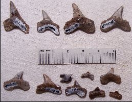 History. (see Everhart, 2007) Right: A total of six small Rhinobatos teeth were recovered from the same sample. |  |